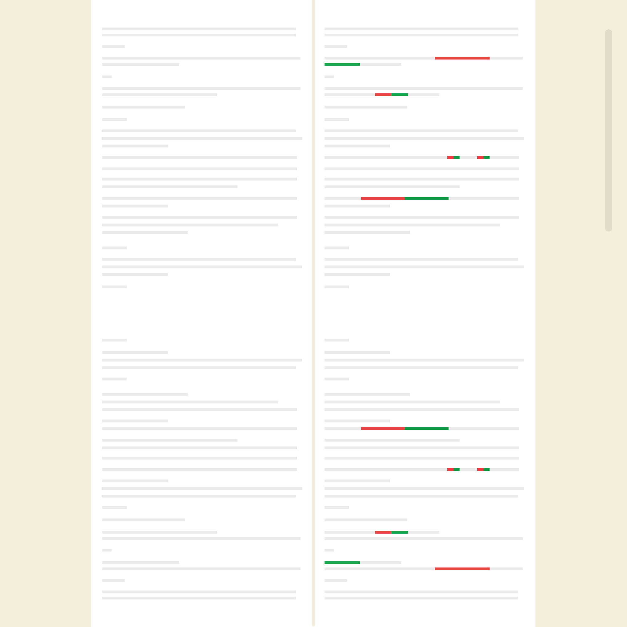 Identify deviations instantly across large sets of similar documents, like customer or employment contracts. Select a template and let Jurimesh compare every document against it. See all deviations at a glance without hours of reading.