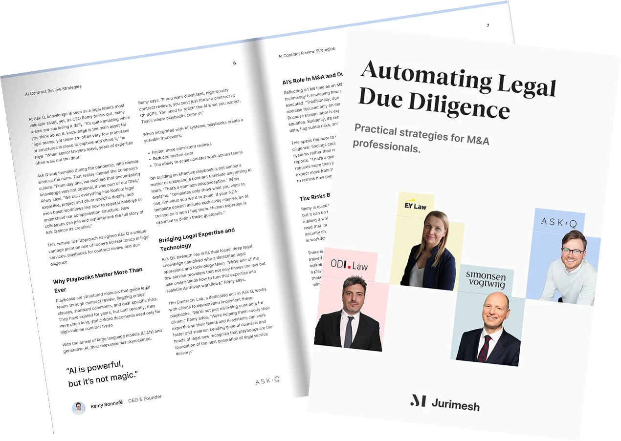 We tested Jurimesh on a past deal—uploading the same data room our law firm had manually reviewed. Jurimesh caught every risk from their report, plus flagged additional risks.
